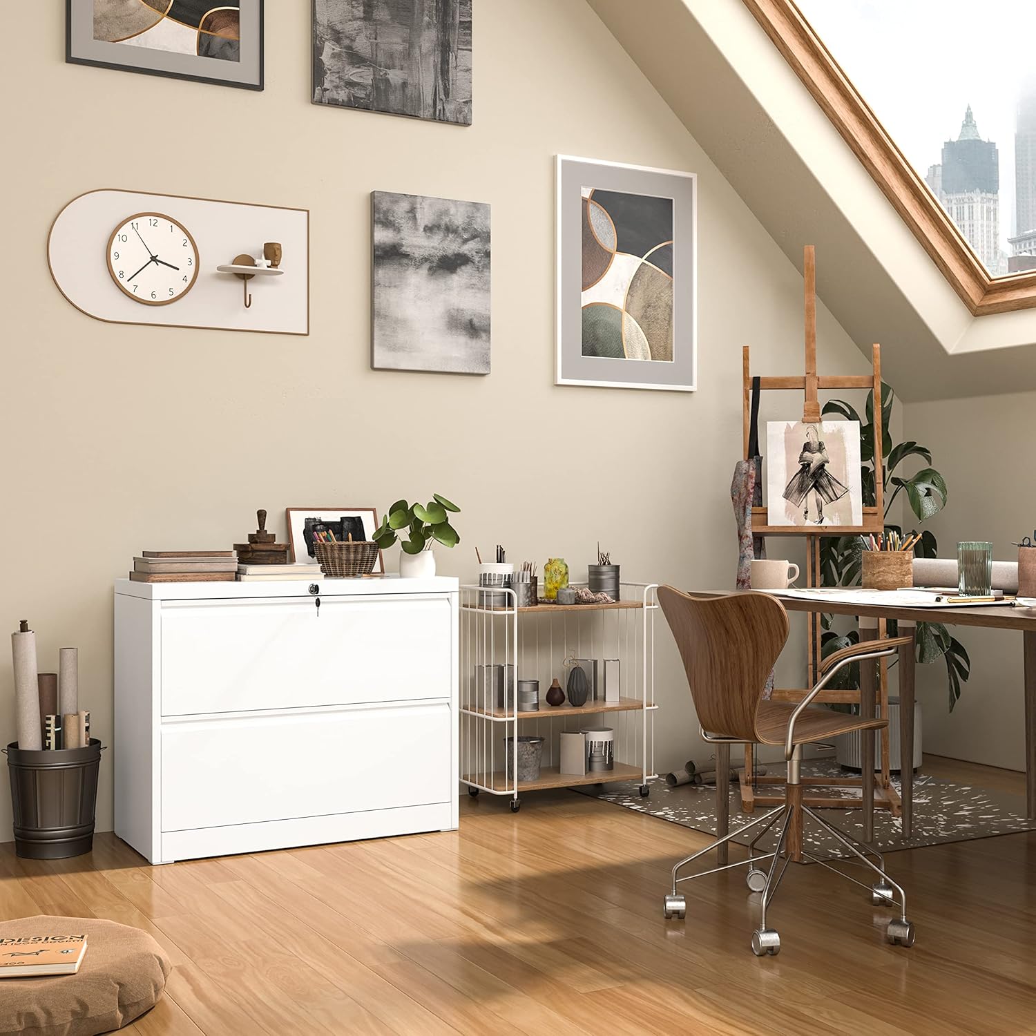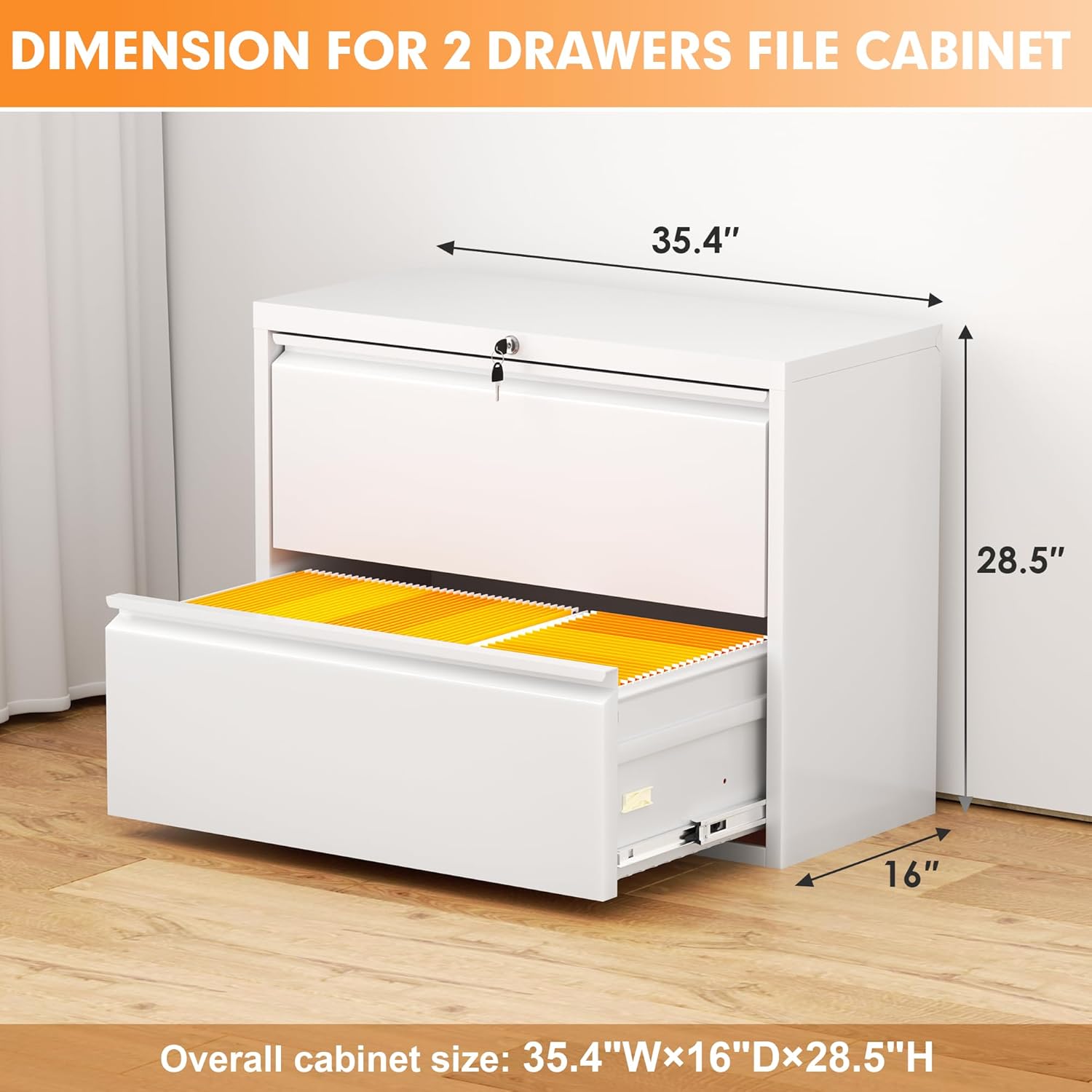 Introducing the INTERGREAT 2 Drawer Lateral File Cabinet with Lock – the perfect blend of style, functionality, and security for your home office. This 36″ wide white lateral filing cabinet is designed to elevate your workspace while keeping your important documents organized and safe.