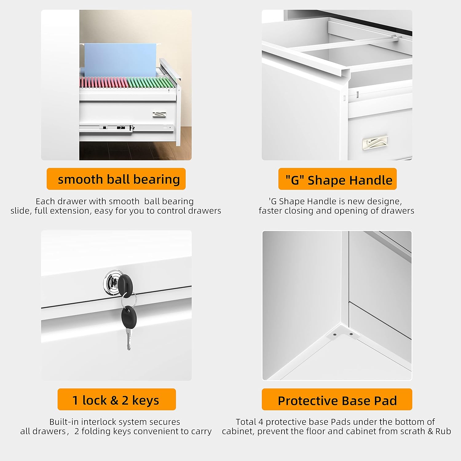 Constructed from high-quality metal steel, this wide file cabinet is built to last and withstand the demands of daily use. The two spacious drawers provide ample storage space for all your files, folders, and office supplies, helping you stay organized and efficient.