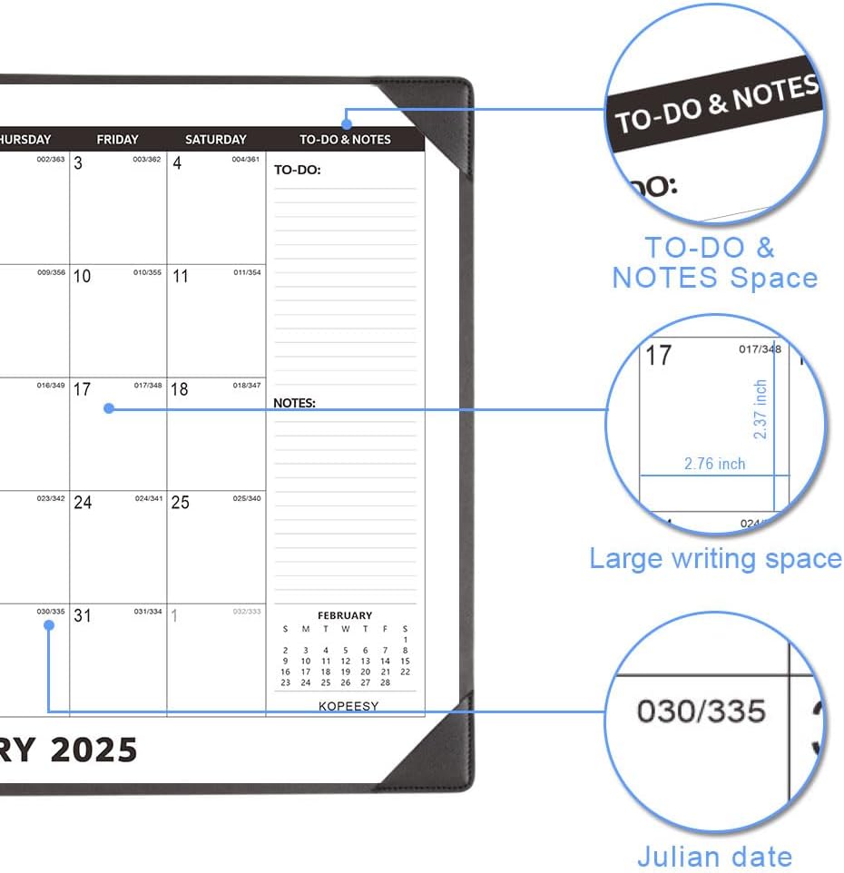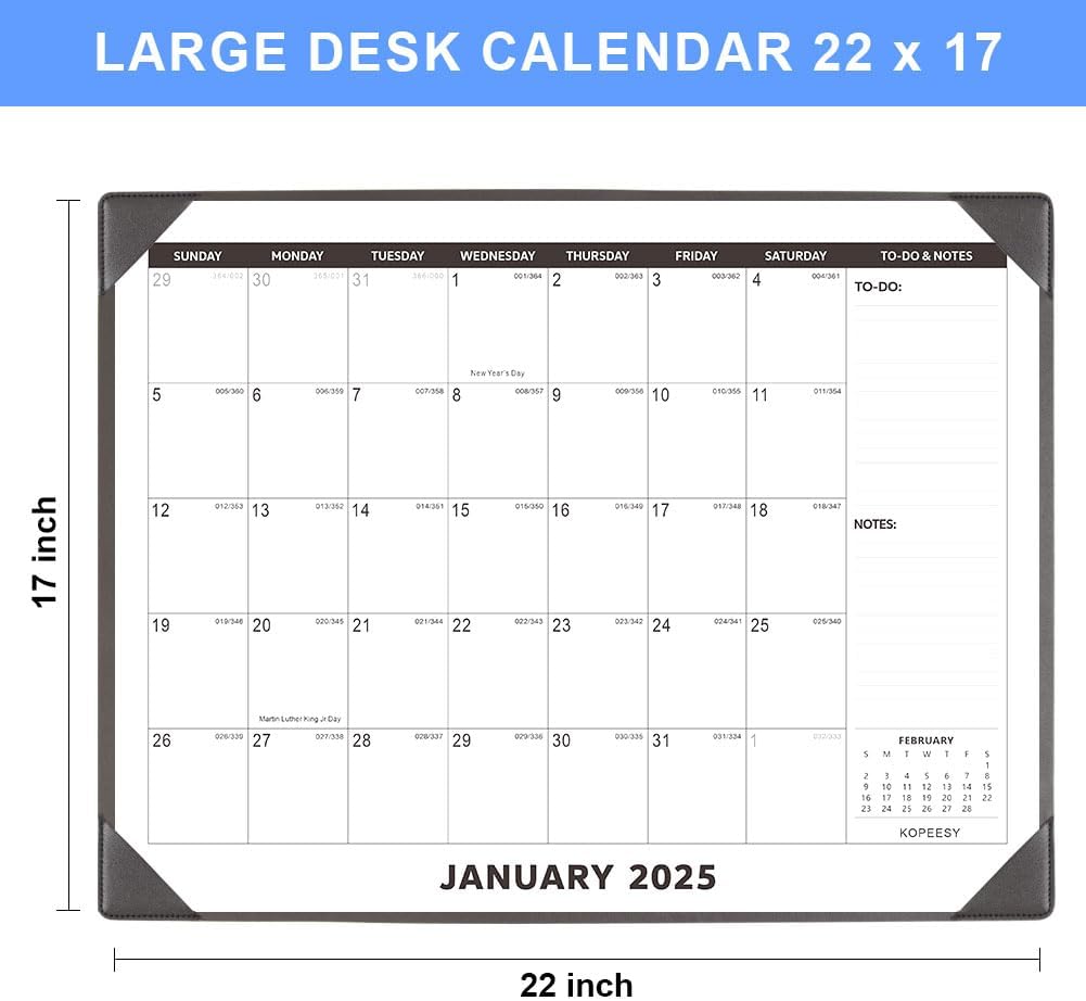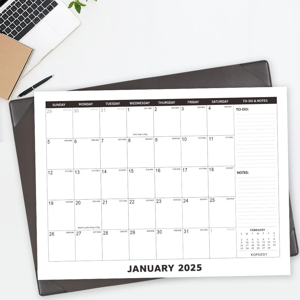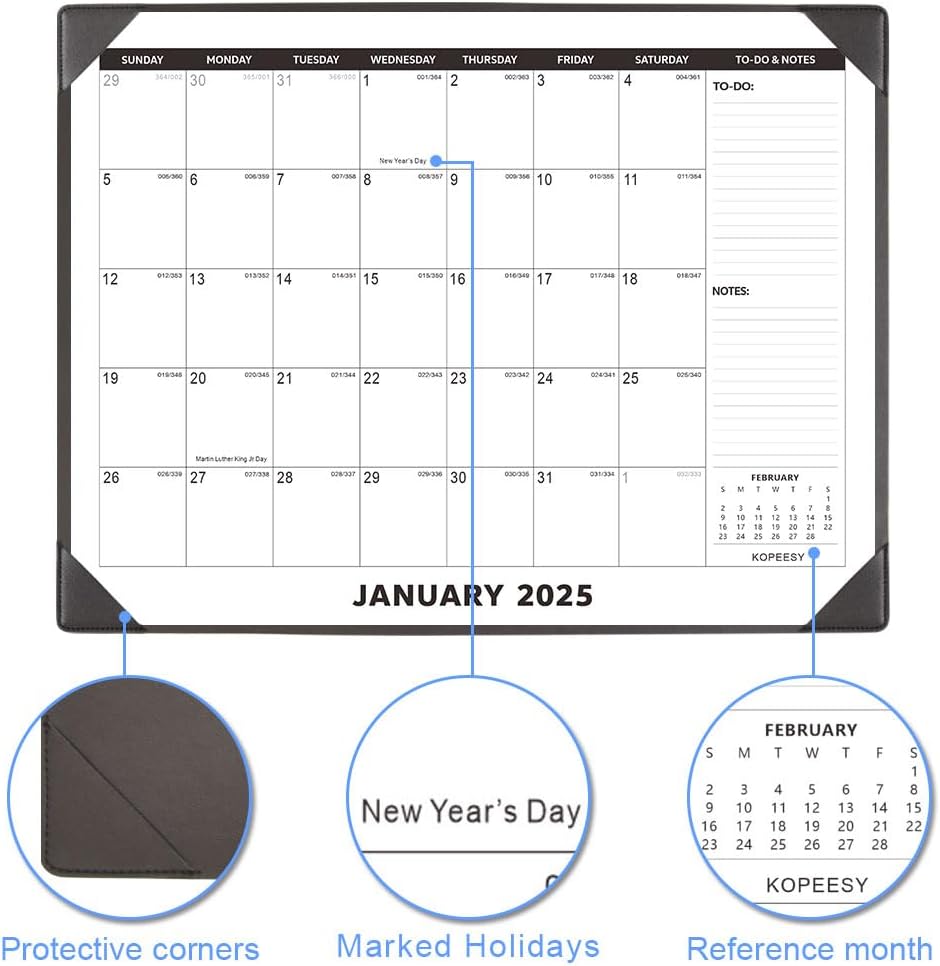 Stay organized, focused, and in control of your schedule with the KOPEESY Large Desk Calendar 2025 with Desktop Mat. Perfect for home, school, and office use, this desk blotter calendar is your go-to solution for efficient planning and productivity. Order yours today and start planning for a successful year ahead!